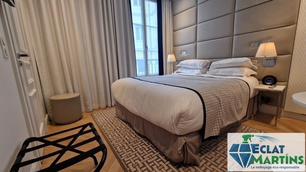 Chez Eclat Martins, nous proposons un service de nettoyage de chambre d'hôtel de haute qualité, spécialement conçu pour répondre aux besoins des établissements d'hébergement à Lyon, Grenoble, Villefontaine et Saint-Quentin-Fallavier. Notre équipe expérimentée s'assure que chaque chambre est impeccablement propre et accueillante pour vos clients.
